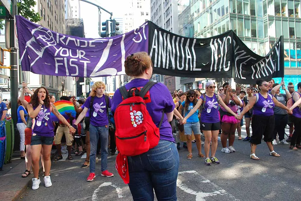 The ladies came out in droves for an unlicensed visibility march from 42nd Street/Bryant Park to Washington Square Park in the West Village. Later that evening, the South Street Seaport's Beekman Beach Club held their Siren NYC Pride Beach Party.